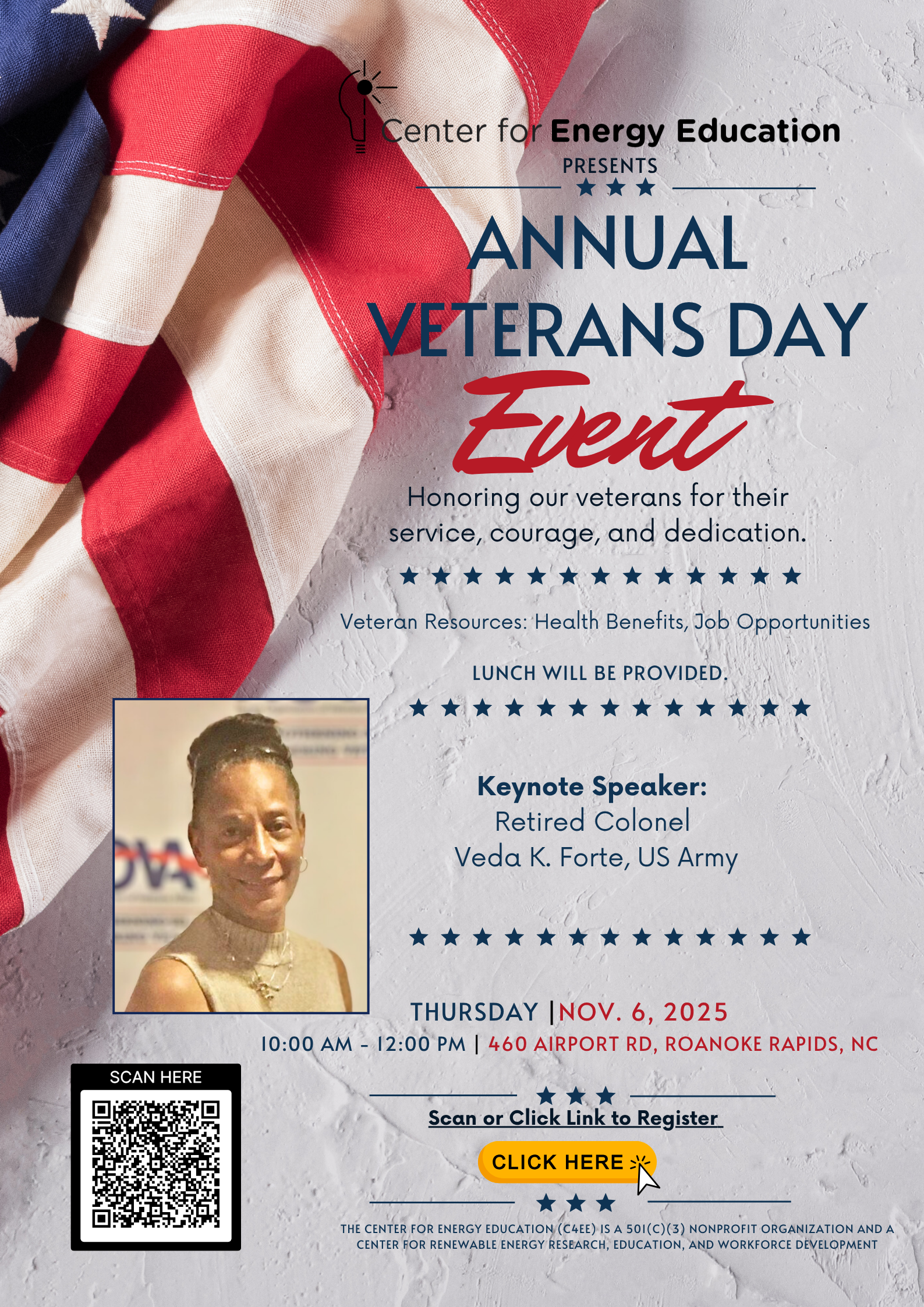 The Center for Energy Education invites you to honor our veterans for their service, courage, and dedication.