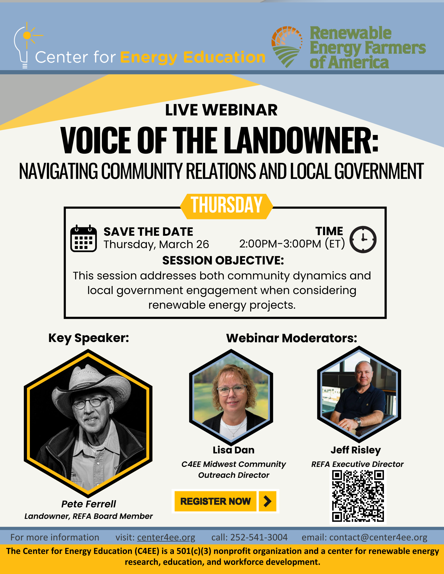 🎙 Moderators: Lisa Dan (C4EE Midwest Community Outreach Director) & Jeff Risley (REFA Executive Director)